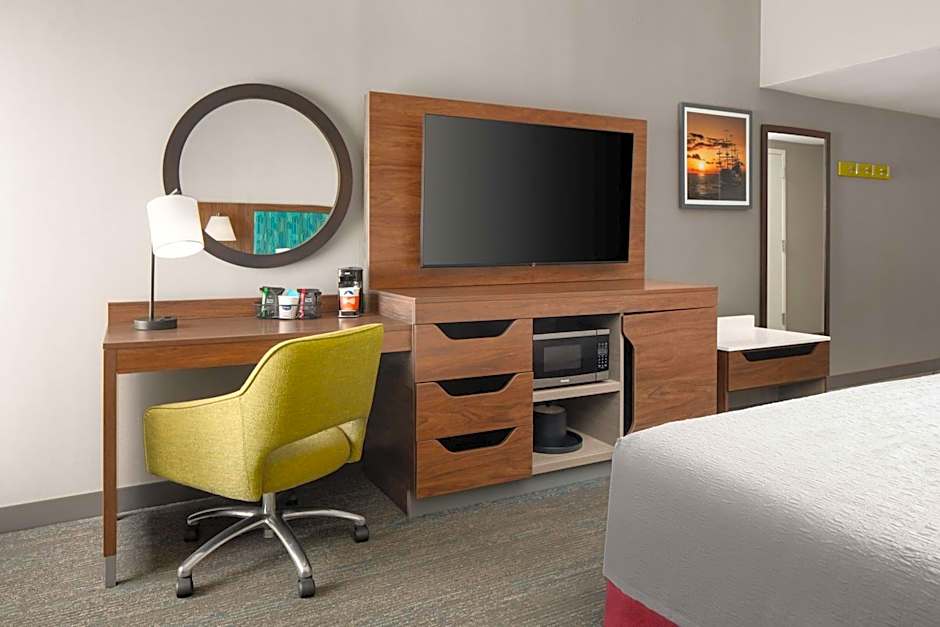 This room features a microwave, refrigerator, seating area, and a work desk.